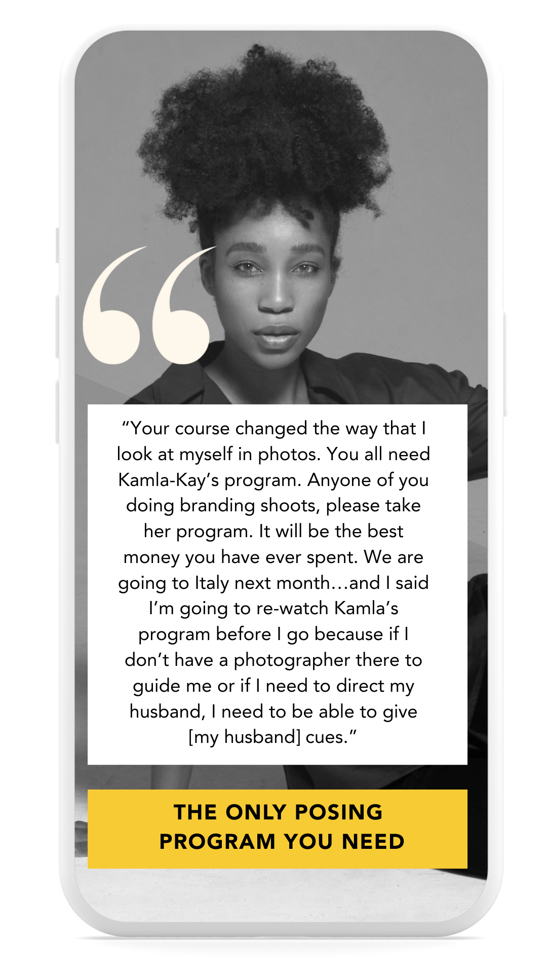 The Perfect Poses program which also includes a live posing element with Kamla-Kay was designed for Founders, Executives, Coaches, Lifestyle Creatives, and Photographers who may not be models…